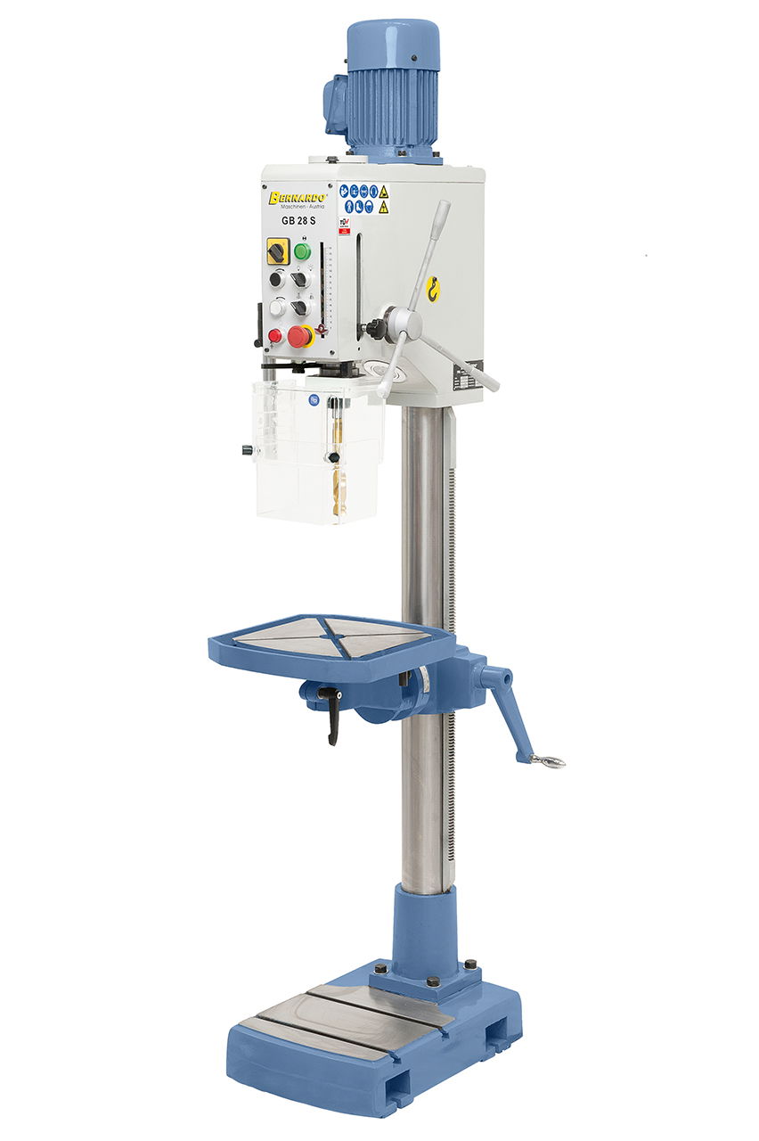 A GB 28 S erős teljesítményű hajtóműves oszlopfúrógép kitűnik a robusztus és vibrációmentes felépítési módja által. Ennek a modellnek az alkalmazási területei a szerelőüzemek, mechanikai műhelyek, de a képzési terület is.