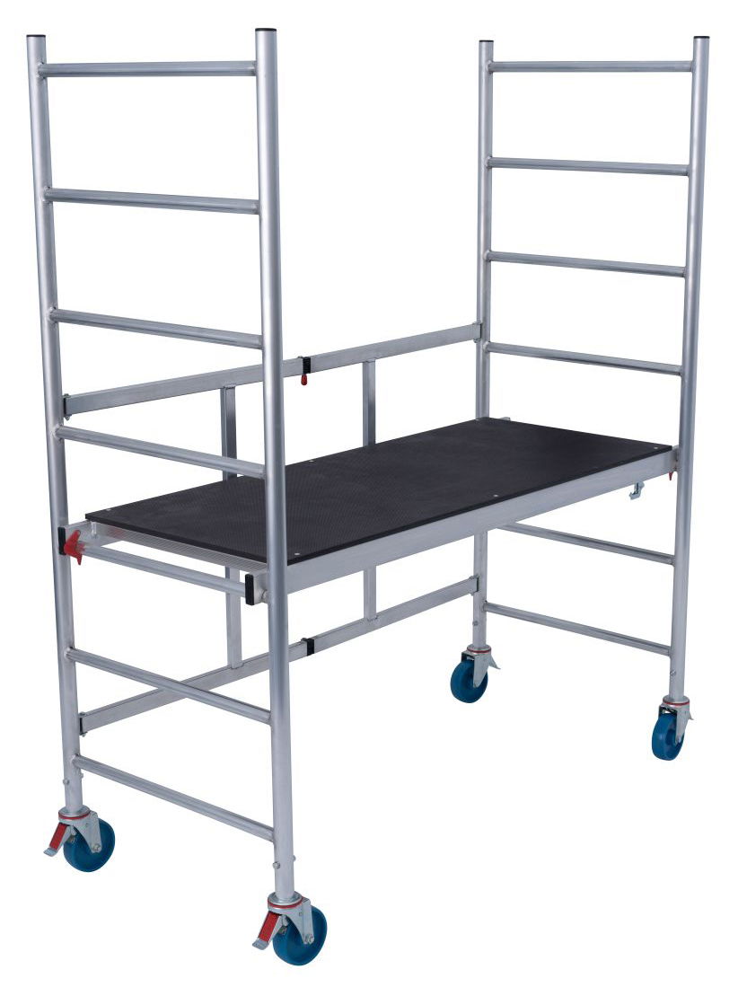 A könnyen mozgatható és szerszámok nélkül összeszerelhető alumínium összecsukható állvány ideális beltéri és kültéri munkákhoz is.